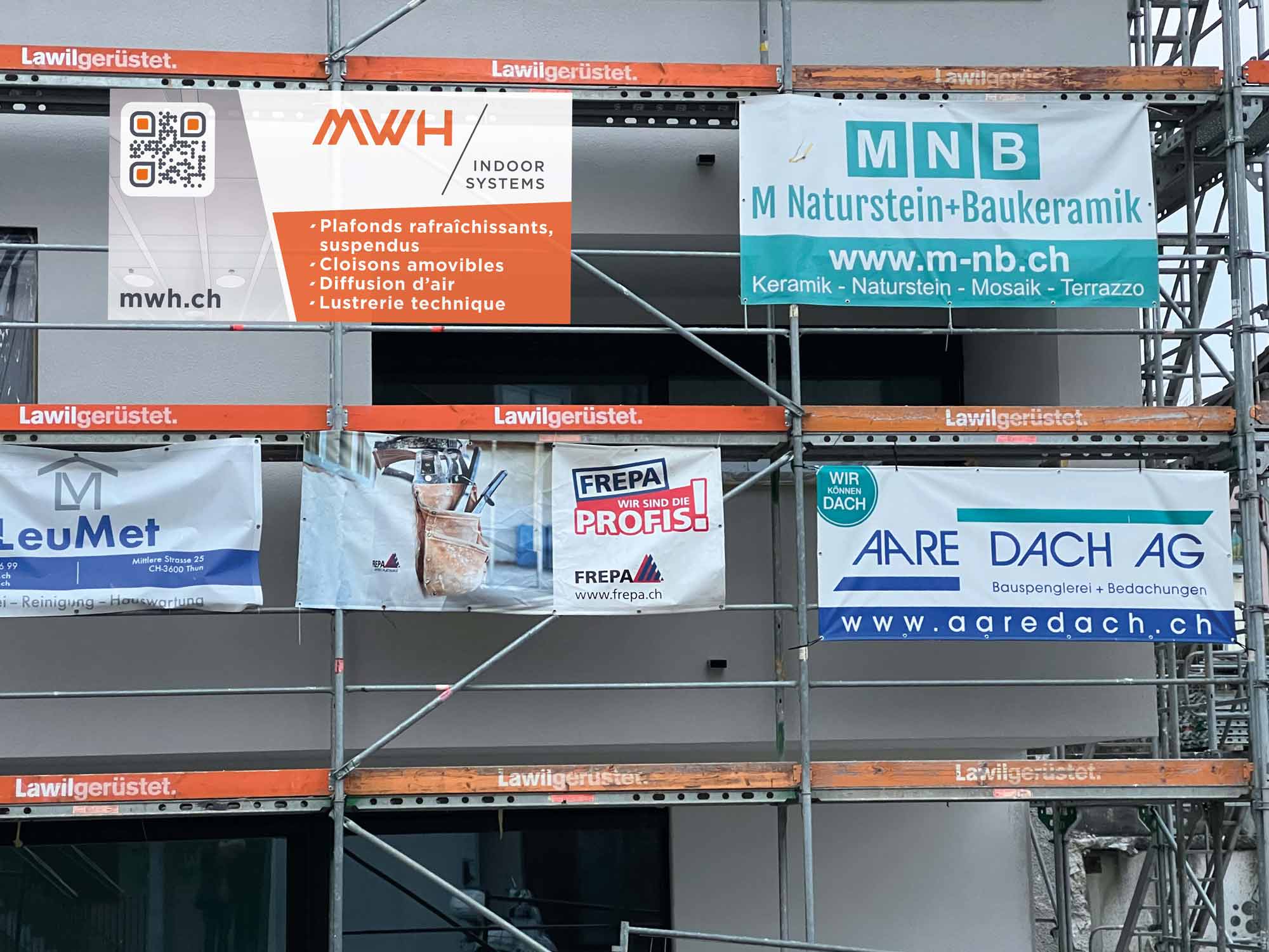 MWH Suisse – stilvoll, auffällig, verlinkt und gut sichtbar auf Baustellen