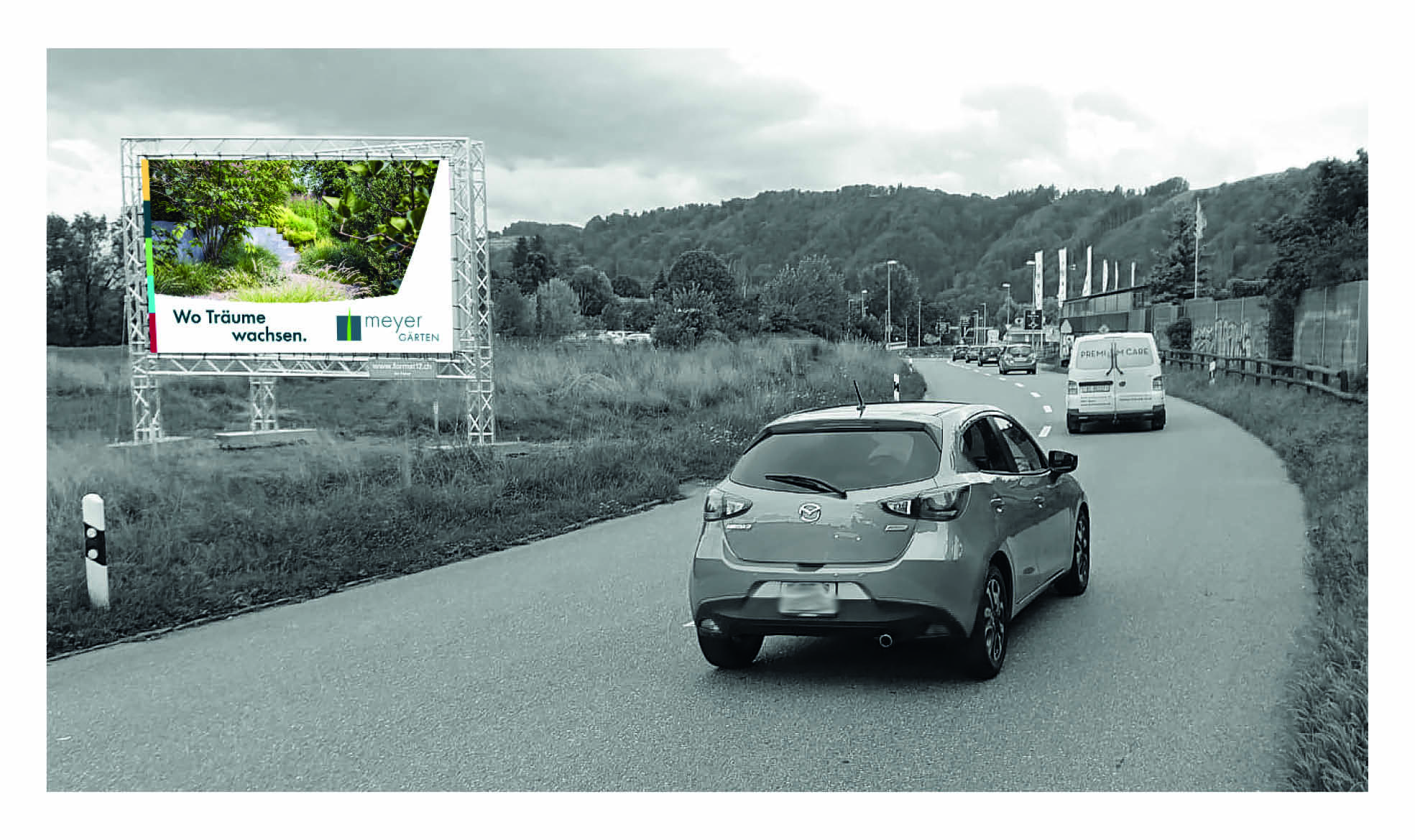 Keywords: Firstbrand, Meyer Gärten, Branddesign, Kommunikation, Grafik, Gestaltung, Corporate Design, Grossplakat, Bern, Belp